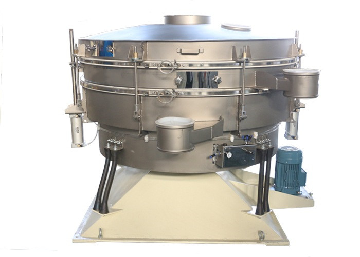 It is a low-frequency rotary vibrating screen that imitates artificial shaking. It combines the plane circular motion - screening and the upward parabolic motion - shaking, forming a non-linear three-dimensional tumbling motion, so that the materials are evenly dispersed on the screen surface from the center to the outer edge. , that is, the materials are dispersed from the center in an involute spiral motion to complete the screening operation. This movement trajectory allows the material to travel a relatively long path on a relatively small screen surface, thereby improving screening accuracy and efficiency. Coupled with the screen cleaning device, a more ideal screening effect can be obtained, making the equipment suitable for round shapes. , cylindrical, flaky and irregular-shaped materials that are easy to block the network and require fine screening.