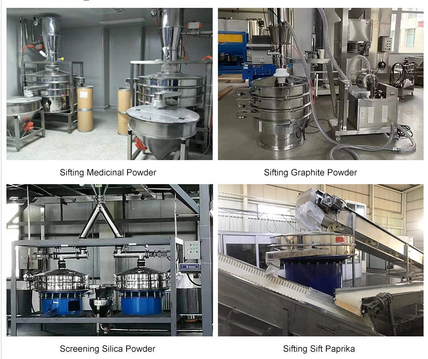Classification and screening: Divide the solid particles into different particle groups of equal size. A vibro sifter can accurately and continuously classify 2-6 kinds of specifications at the same time, which is suitable for the classification of granular and powdery materials in multiple industries.