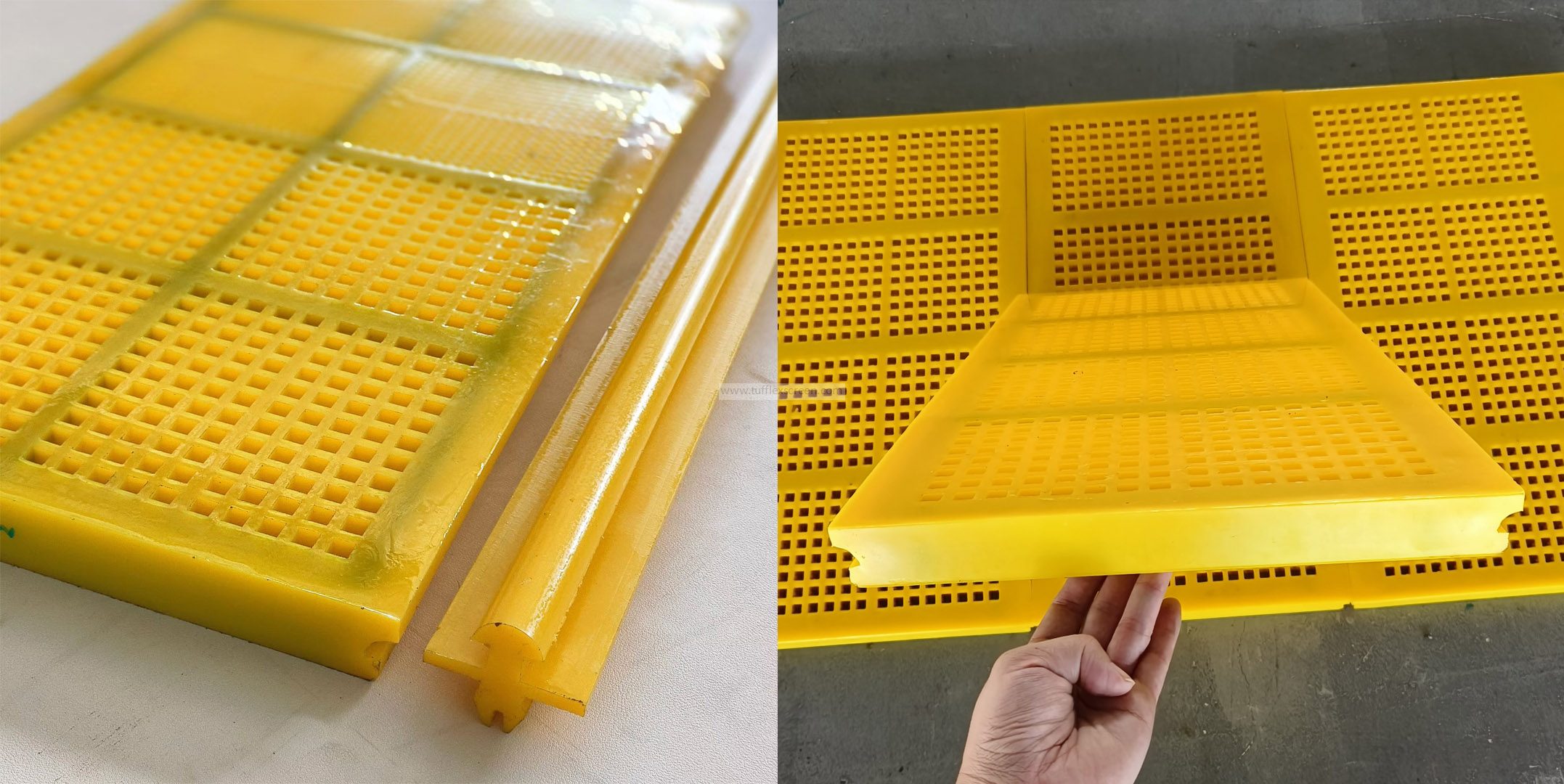 Polyurethane dewatering screen panel can provide a ramp which helps to maximize screen washing capabilities and mainly used for dewatering and dehydration for various materials. Such as below: